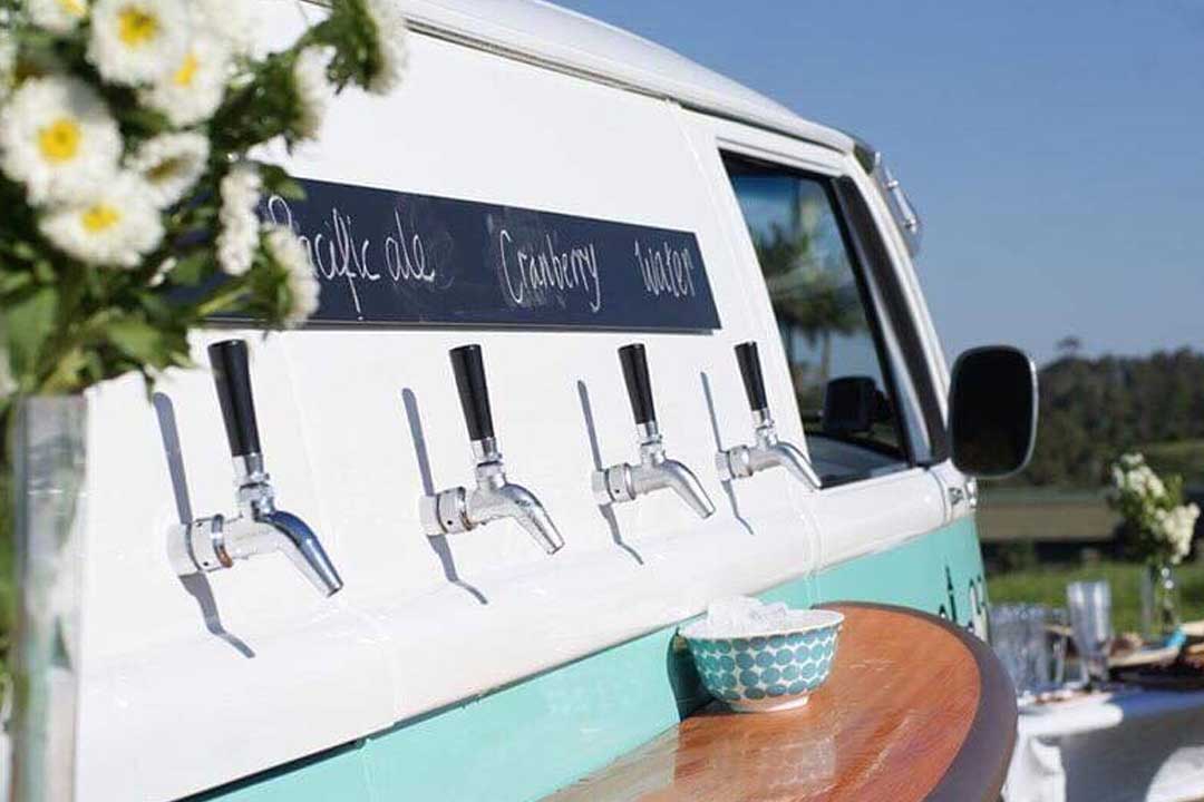 Planning a more bohemian style wedding, looking for something a bit different? Look no further than Kombi Keg for a memorable wedding. The beautifully renovated 1974 Kombi (her name is Genie, as she brings the magic!) is fitted with 6 taps serving ice-cold beers, wine, prosecco, cocktails and more, has a rear serving area in the boot with ice buckets for bottled drinks or even a mini cocktail bar, a 55″ pop up rooftop TV to display your photos, videos or wedding monogram, plus garden games and more!. The team are licensed and can be on hand to pour for you, or you can let your guests help themselves. Once the party is over, the team just packs up and drives out. It’s that simple!